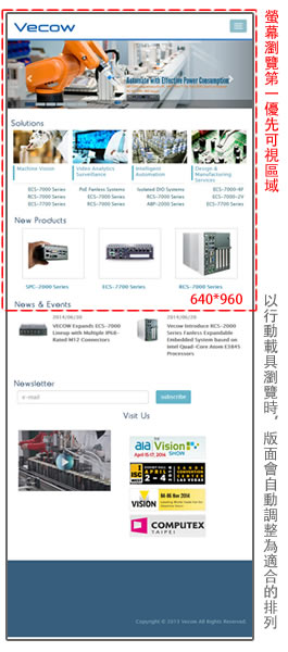 1.超恩公司是一家提供嵌入式電腦與工業自動化解決方案的硬體供應商,其官網必須具備產品展示與提供客戶下單的功能,因此前台網站的首要重點在於使用者動線的規劃,且為因應消費者會使用各種跨螢幕的裝置上網,本網站使用回應式設計技術(Responsive Web Design),自動提供最佳瀏覽方式的排版給不同尺寸的載具,不須製作不同版本的網站。